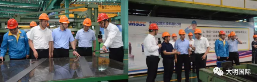 5月28日,河鋼邯鋼副總經理李耀強、技術中心主任陳子剛、邯寶熱軋廠黨委書記潘竟忠、品質管理部副部長白碩、銷售分公司副處長李建國等一行來訪大明,大明國際總裁蔣長虹、集團總工程師唐中海、靖江加工中心總經理陳寧、集團碳鋼事業部總經理鄧梁峰、副總經理楊順、總經理助理董云龍等熱情接待。李耀強副總經理一行先后參觀了大明集團總部、大明靖江加工中心和大明重工,充分了解了大明的設備工藝、加工能力等情況。